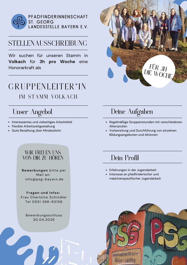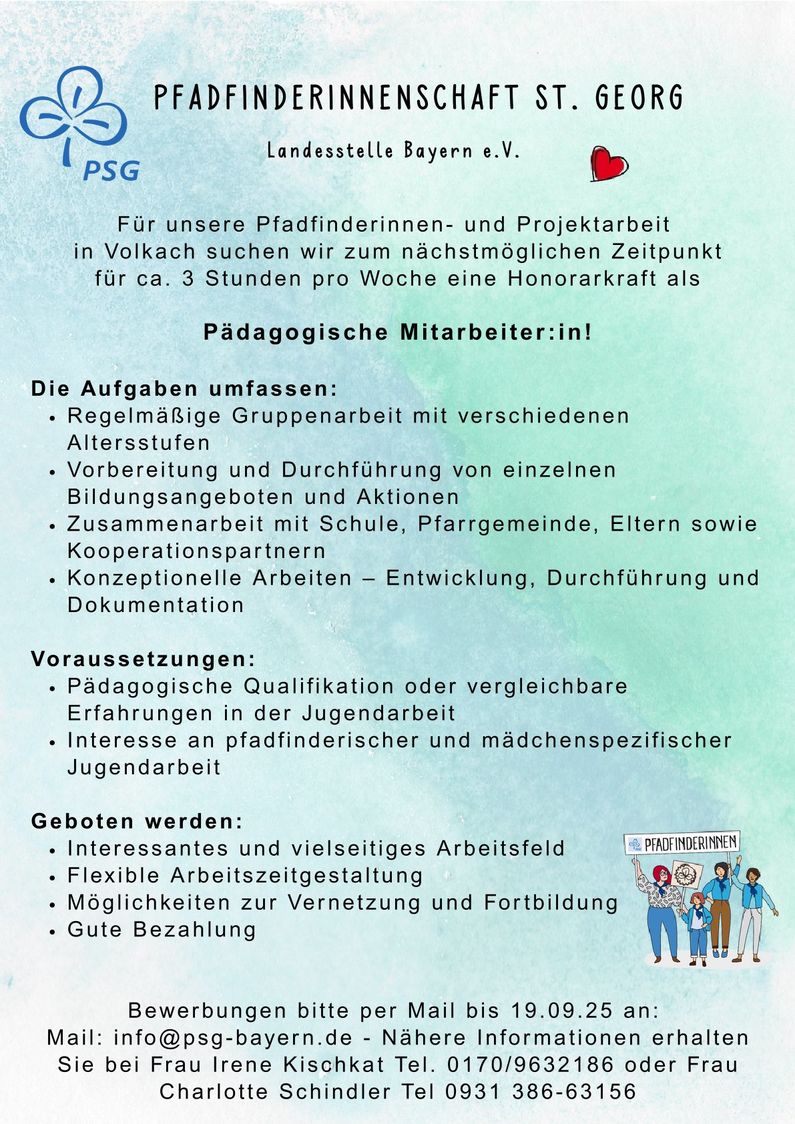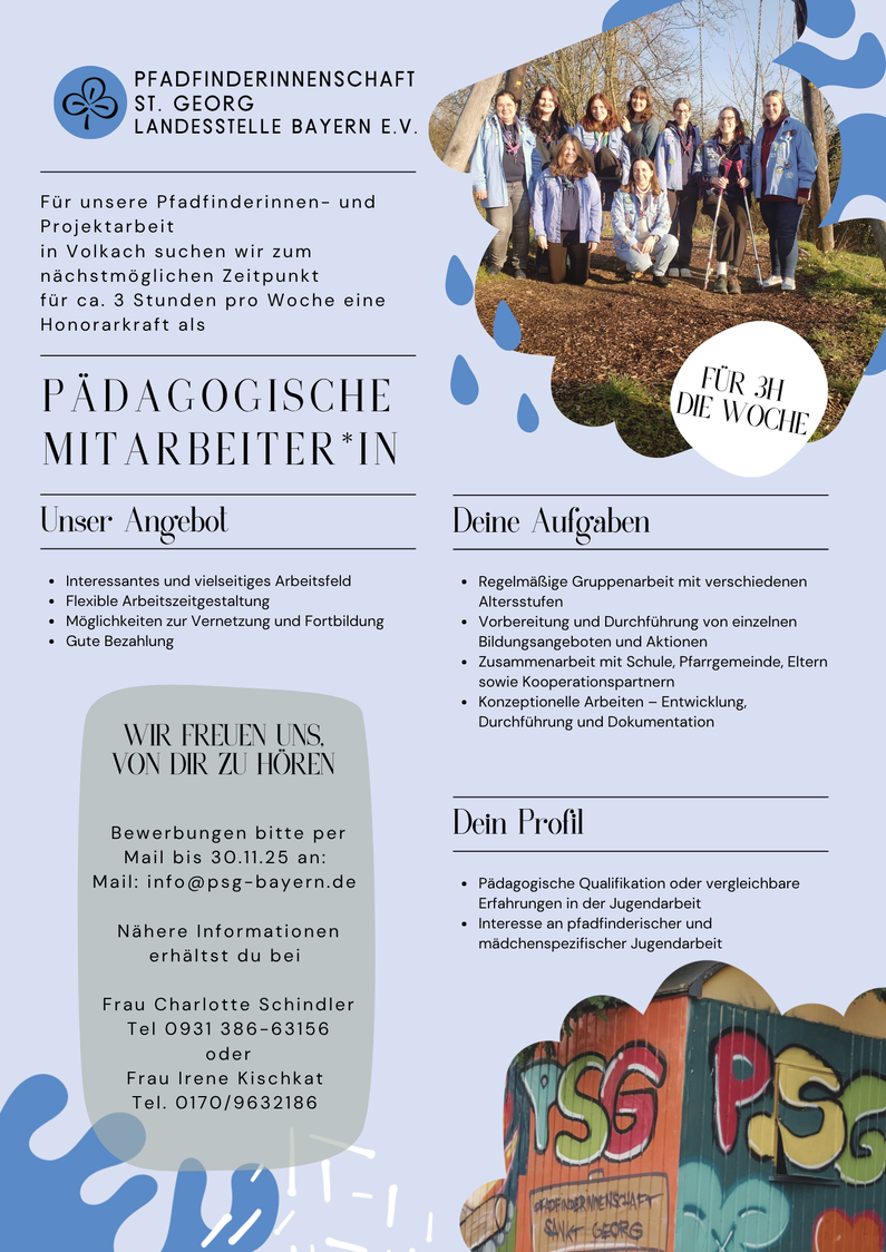 Pädagogische Mitarbeiterin für unsere Pfadfinderinnen- und Projektarbeit zur schulbezogenen Jugendarbeit in Volkach gesucht