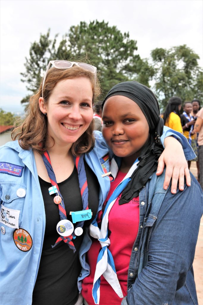 Und es gab noch etwas zu feiern: 40 Jahre Partner*innenschaft zwischen der PSG und der Association des Guides du Rwanda/ Rwanda Girl Guides Association AGR. Da aufgrund der aktuellen Lage leider kein persönlicher Besuch der ruandischen Pfadfinder*innen möglich war, gab es stattdessen ein Videogrußwort von Pascaline Umulisa, Executive Secretary der AGR. Das gemeinsame Begegnungsprojekt „Closing the gap“ zum Thema Gleichberechtigung, das durch Engagement Global gefördert wird, läuft trotz der aktuellen Situation zwischen den beiden Verbänden und wird in diesem Jahr virtuell stattfinden.