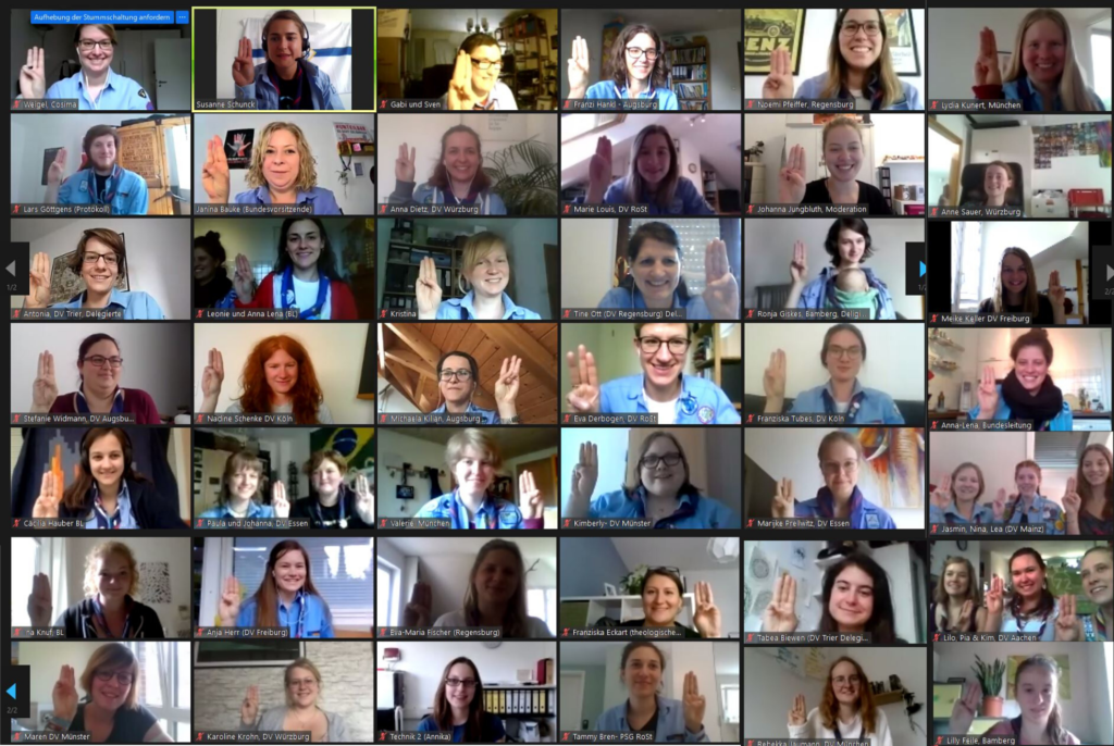 „Digitales tagen in Zeiten einer globalen Pandemie bringt gewisse Herausforderungen mit sich“ betonte Susanne Schunck, Bundesvorsitzende der PSG. „In Zeiten, in denen Jugendverbandsarbeit nicht so wie gewohnt stattfinden kann, ist es umso wichtiger zu zeigen, dass wir weiterhin aktiv sind und demokratische Prozesse trotzdem stattfinden können. Diese Bundesversammlung war ein wichtiges Zeichen, dass wir trotz sozialer Distanz umso enger zusammenrücken und Pfadfinden gemeinsam gestalten.“