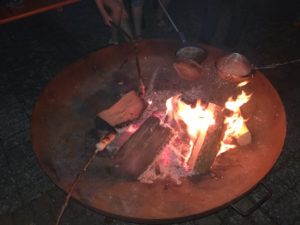 Anschließend wurde bei schönem Wetter im Innenhof des Kilianeums ein Fest der Begegnung gefeiert. Bei gutem Essen und Livemusik boten die Verbände, Regios und Jugendhäuser ihr vielseitiges Programm an. Ganz pfadfinderisch gab es bei uns natürlich Lagerfeuer und Stockbrot. Und das ließ sich auch unser neuer Bischof schmecken 🙂