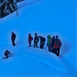 Das familiäre Abendessen bietet genügend Gelegenheiten, die „Mitbewohner“ kennenzulernen. Der Abend wurde als Auftakt für die nächsten sportlichen 4 Tage genutzt: mit einer Schneeschuh-Wanderung zum Fluß.