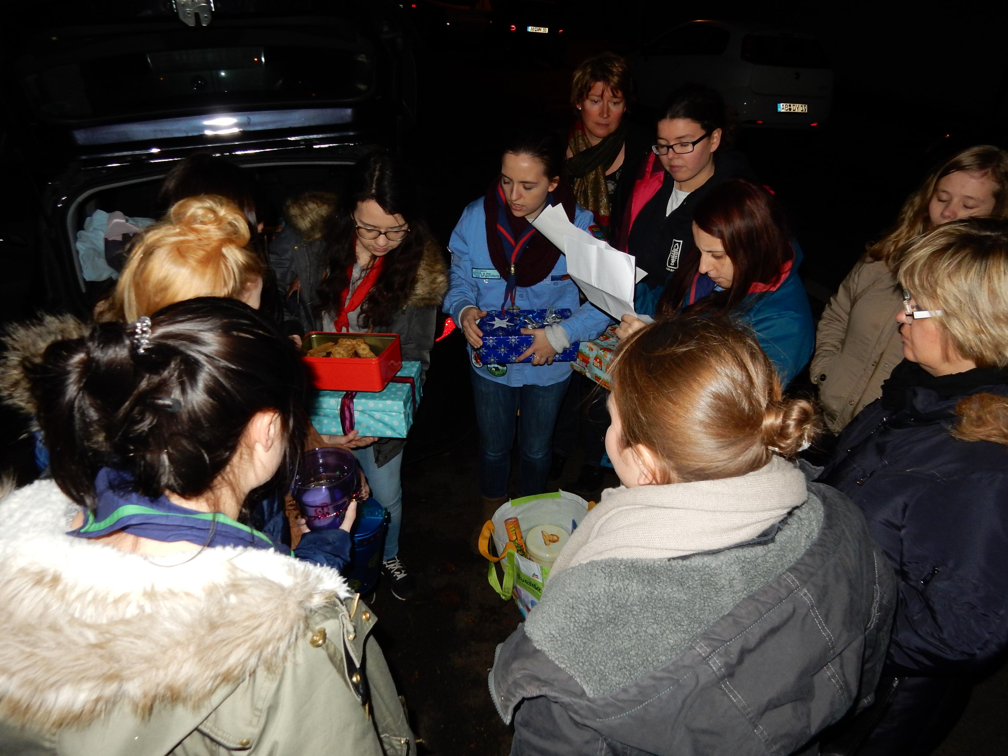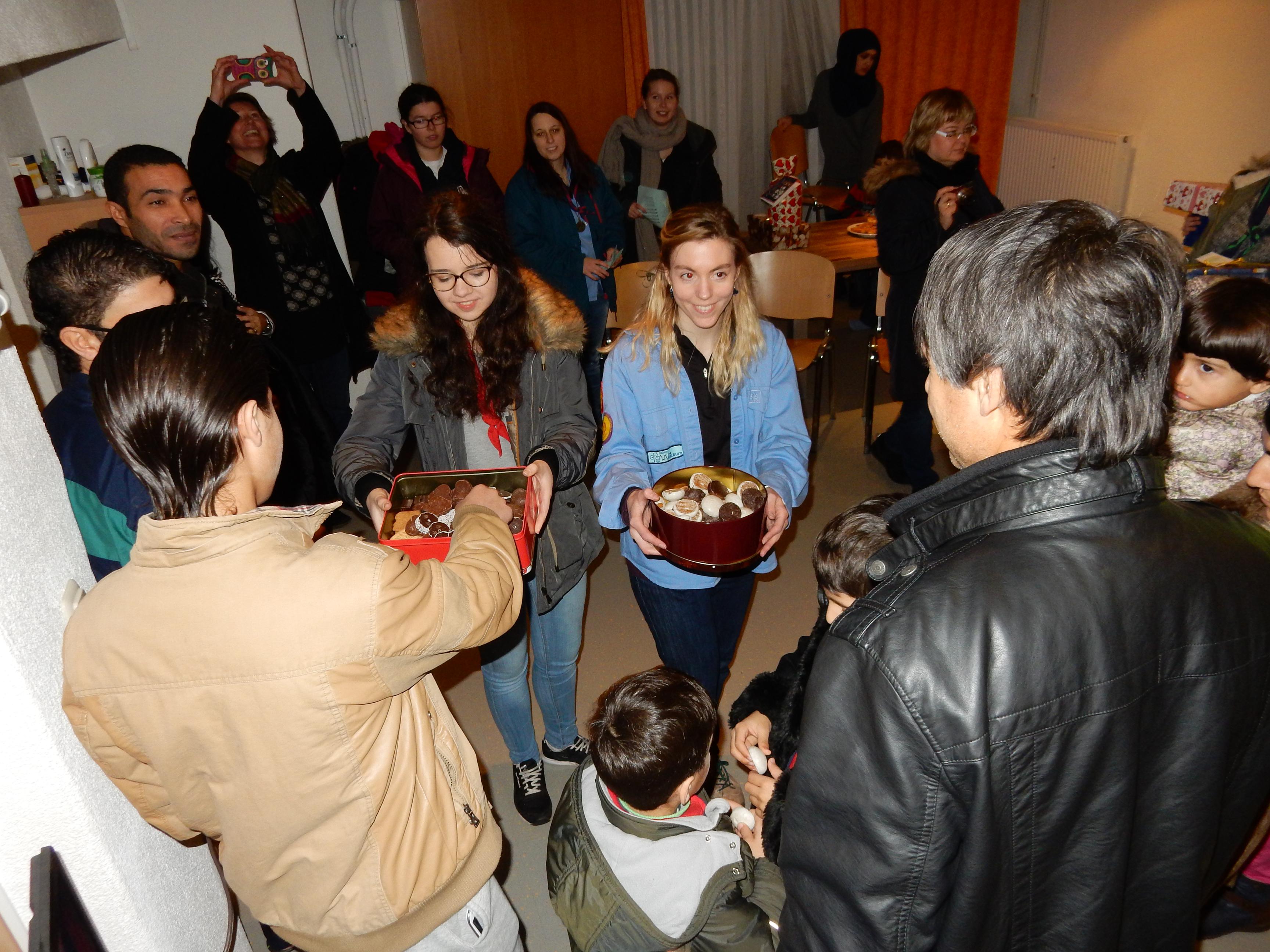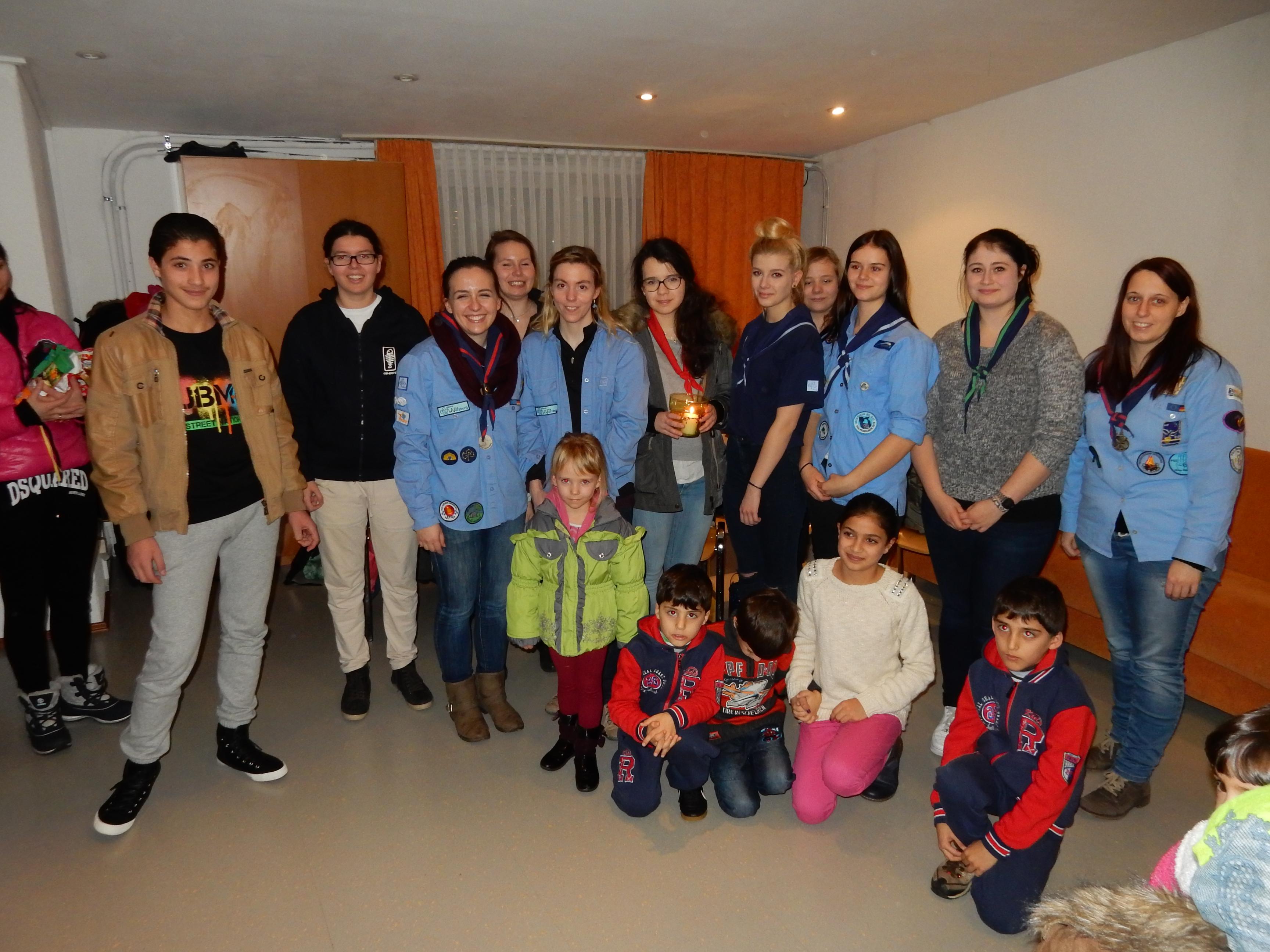Am 4. Adventssonntag, den 21.12.14 machten sich 10 Pfadfinderinnen auf den Weg, um 60 Flüchtlingskinder und -jugendliche zu beschenken. Viele PSGlerinnen und HelferInnen hatten für jedes Kind ein schuhkartongroßes Paket gepackt, voll mit schönen Dingen, Spielzeug und Süßigkeiten. An drei dezentralen Unterkünften in Aschaffenburg wurde also gesungen, gelacht und Bescherung gefeiert. Bei Lebkuchen und Spekulatius freuten sich die Eltern über die strahlenden Gesichter ihrer Kinder. Die Dankbarkeit rührte auch uns Pfadfinderinnen – und so wurden alle beschenkt!