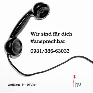 „Du magst mal mit jemandem außerhalb deiner Familie oder deines Freundeskreises quatschen oder ernsthafte Fragen oder Probleme besprechen? Wir sind für dich #ansprechbar! Unter 0931/38663033 erreicht du werktags zwischen 9 und 16 Uhr jemanden aus der kja, der sich gerne mit dir unterhält!