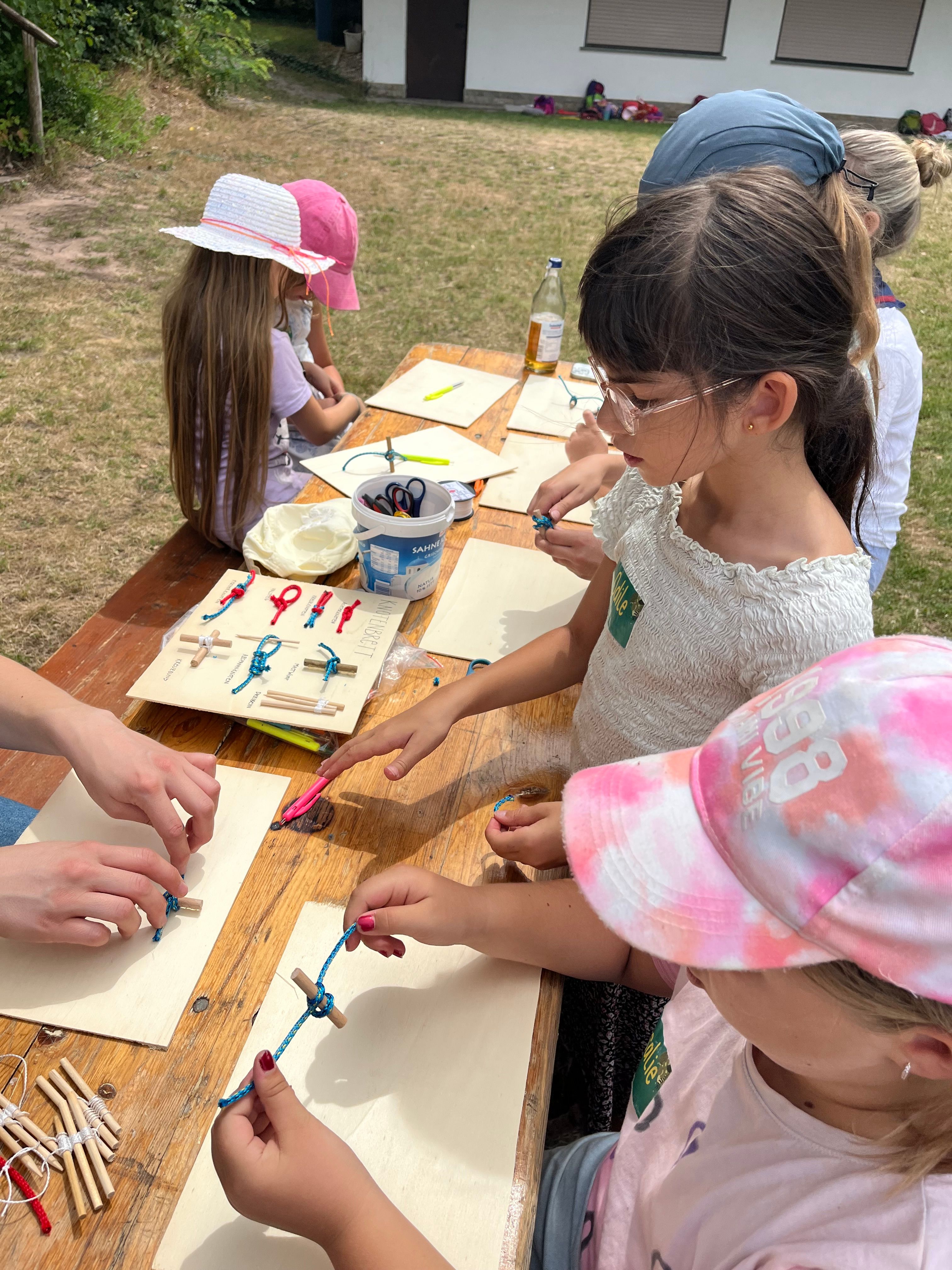 In einem weiteren Workshop konnten sich die Mädchen künstlerisch und handwerklich austoben. Mit Holzplatten, Nägeln und bunten Fäden entstanden individuelle Nagelbretter – jedes ein kleines Kunstwerk und ein schönes Andenken an den Tag.
