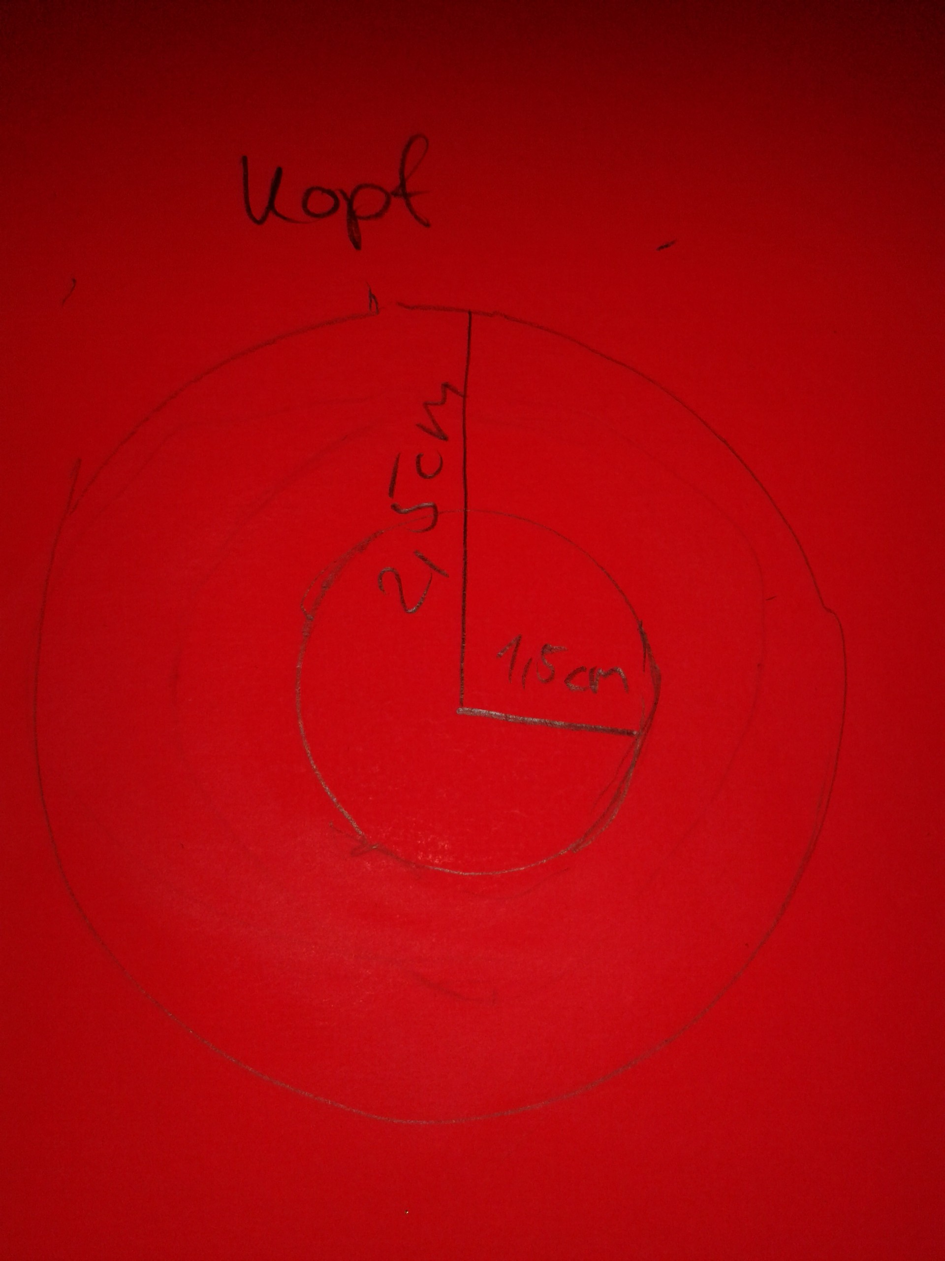 Diese Schritte wiederholt ihr für die Kugel des Körpers. Bei dieser hat der kleinere Kreis auch einen Radius von 1,5cm und der größere Kreis einen Radius von 3cm.