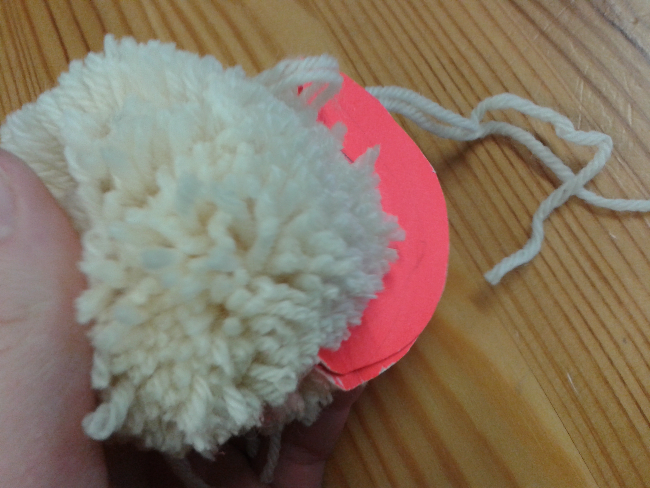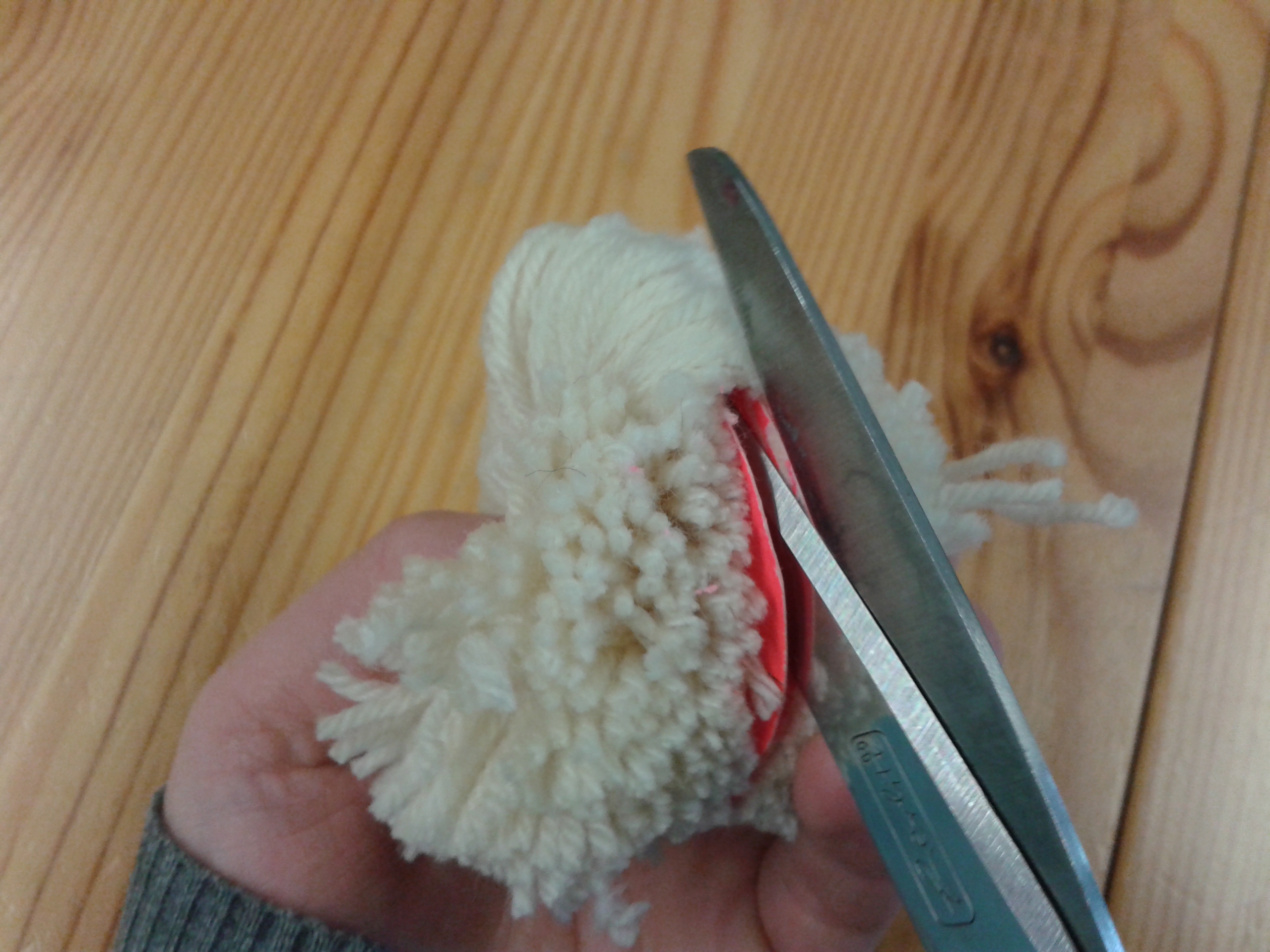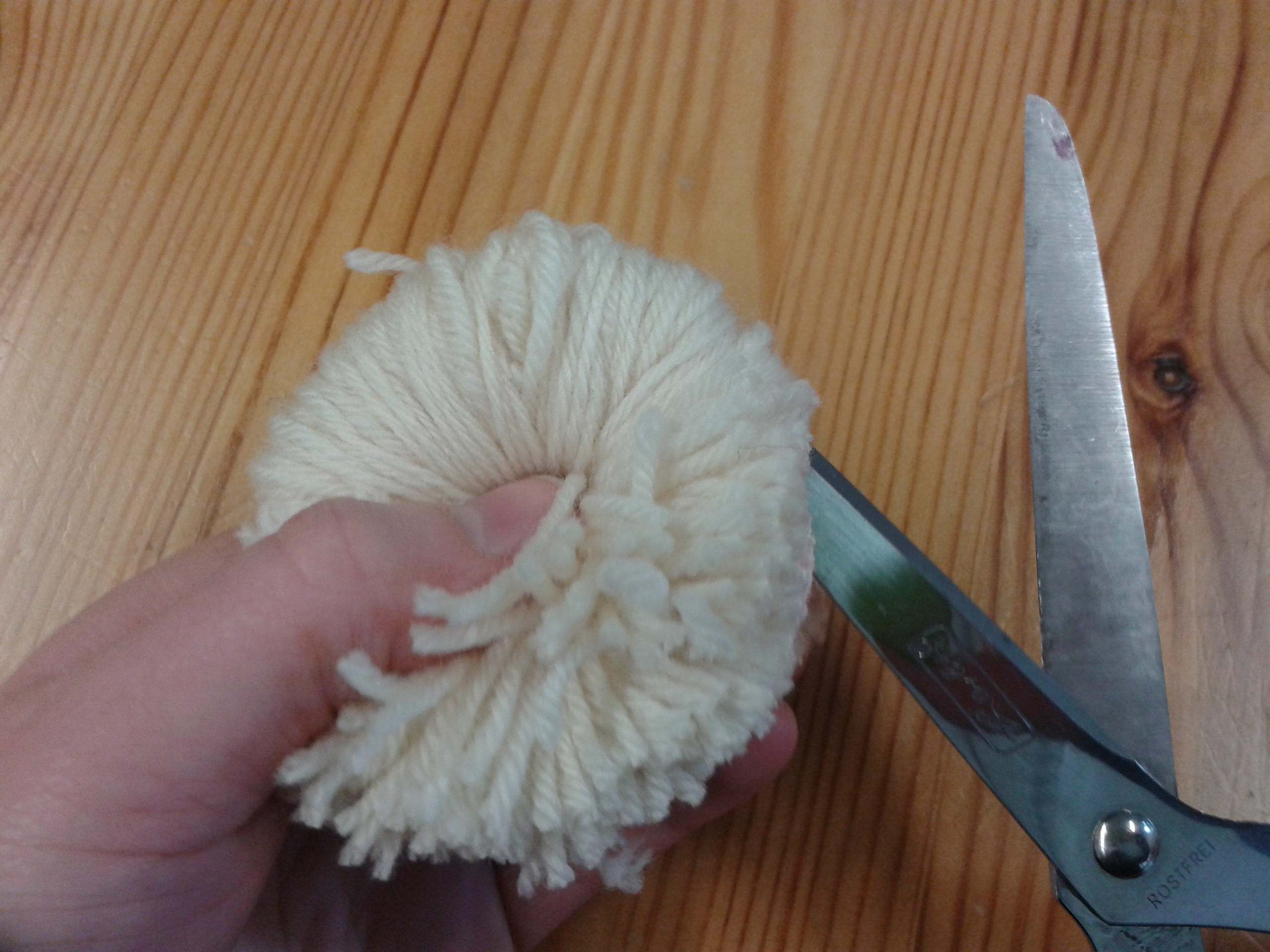 Um einen schönen, runden und dichten Pompon zu erhalten, zieht die Fäden ab der zweiten Runde gut fest. Sobald die Fäden aufgebraucht sind, schneidet euch einfach neue ab und wickelt weiter.