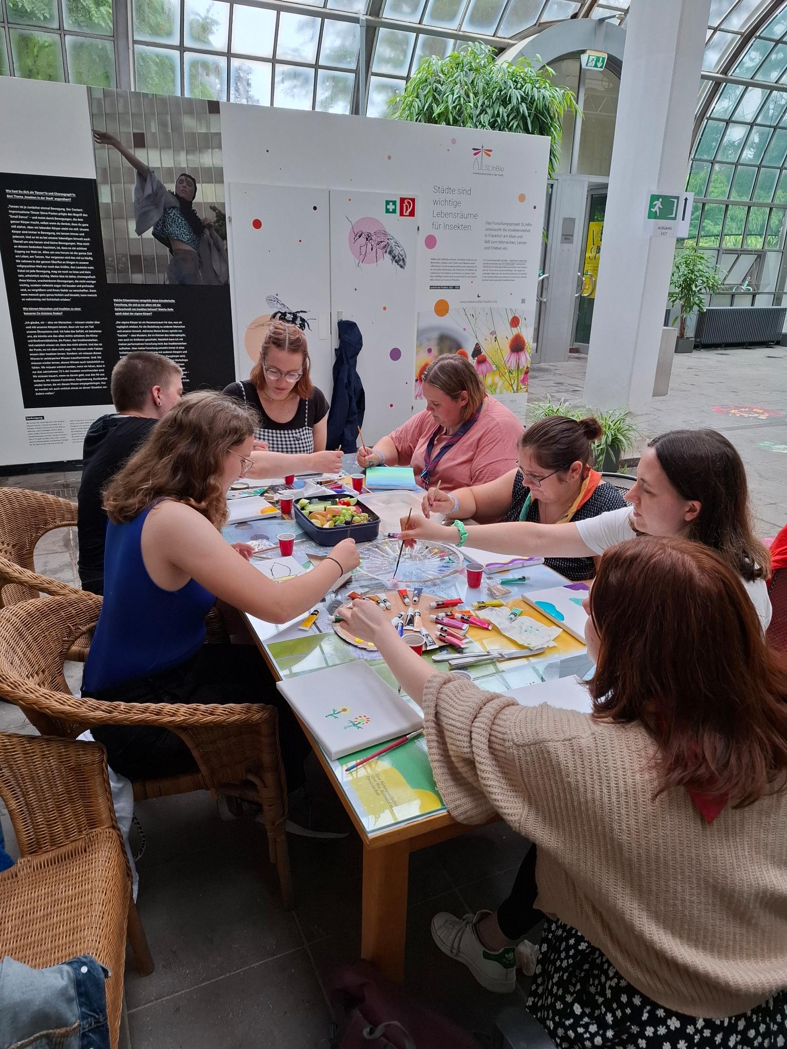 Am 27.7 startete die DL zur Sommersause. Ziel war der Palmengarten in Frankfurt. Am Vormittag machten wir gemeinsam ein Picknick und malten dabei auf Bilderrahmen. Jede hat ein personalisierte Karte mit warmen Worten, PSG Socken und ein Button als Dankeschön für die Arbeit in der DL erhalten. Gemeinsam verbrachten wir noch ein leckeres Mittagessen im Palmengarten, bevor es gegen 15 Uhr wieder zurück nach Würzburg ging. Wir als hauptamtliches Team sind sehr dankbar so engagierte und tolle Frauen als Ehrenamtliche zu haben und wollten mit der Aktion einfach mal DANKE sagen.