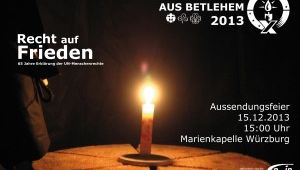 Wie in jedem Jahr, wird auch 2013 wieder das Friedenslicht in der Geburtsgrotte Jesu in Bethlehem von einem oberösterreichischen Kind entzündet und nach Europa gebracht. Von Wien aus verbreitet sich dieses Licht über die ganze Welt. In Würzburg findet die […]