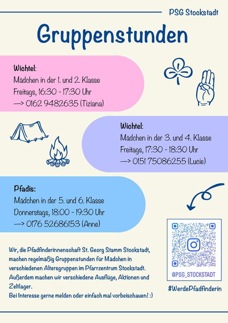 Die Pfadigruppe (10 - 13jährige Mädchen) trifft sich mittwochs von 17:00 - 18:30 Uhr.